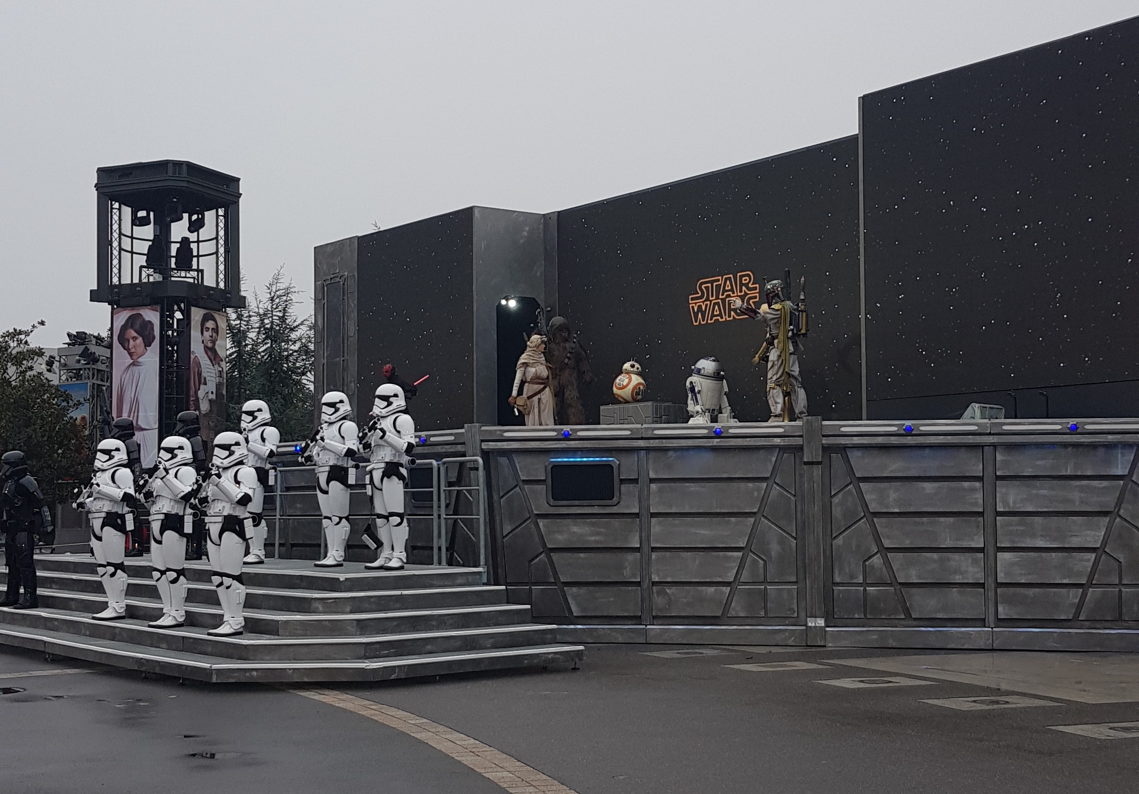 Während der Shows: „The Imperial March“, „First Order March“ und besonders bei „Legends of a Galaxy Far, Far Away“ bekommt man einige Charaktere zu Gesicht, nur leider werden die Zuschauer dort eher weniger mit einbezogen und die Shows sind komplett auf Französisch, kein Mix aus Französisch und Englisch, wie sonst üblich, die Shows sind toll anzusehen, aber ich muss sagen ein Mal reichte mir dann auch. Wirklich spektakulär ist dagegen aber die Abendshow: „Star Wars: A Galactic Celebration“. Diese findet wieder am Hotel Tower statt und ist wirklich ein toller Abschluss.